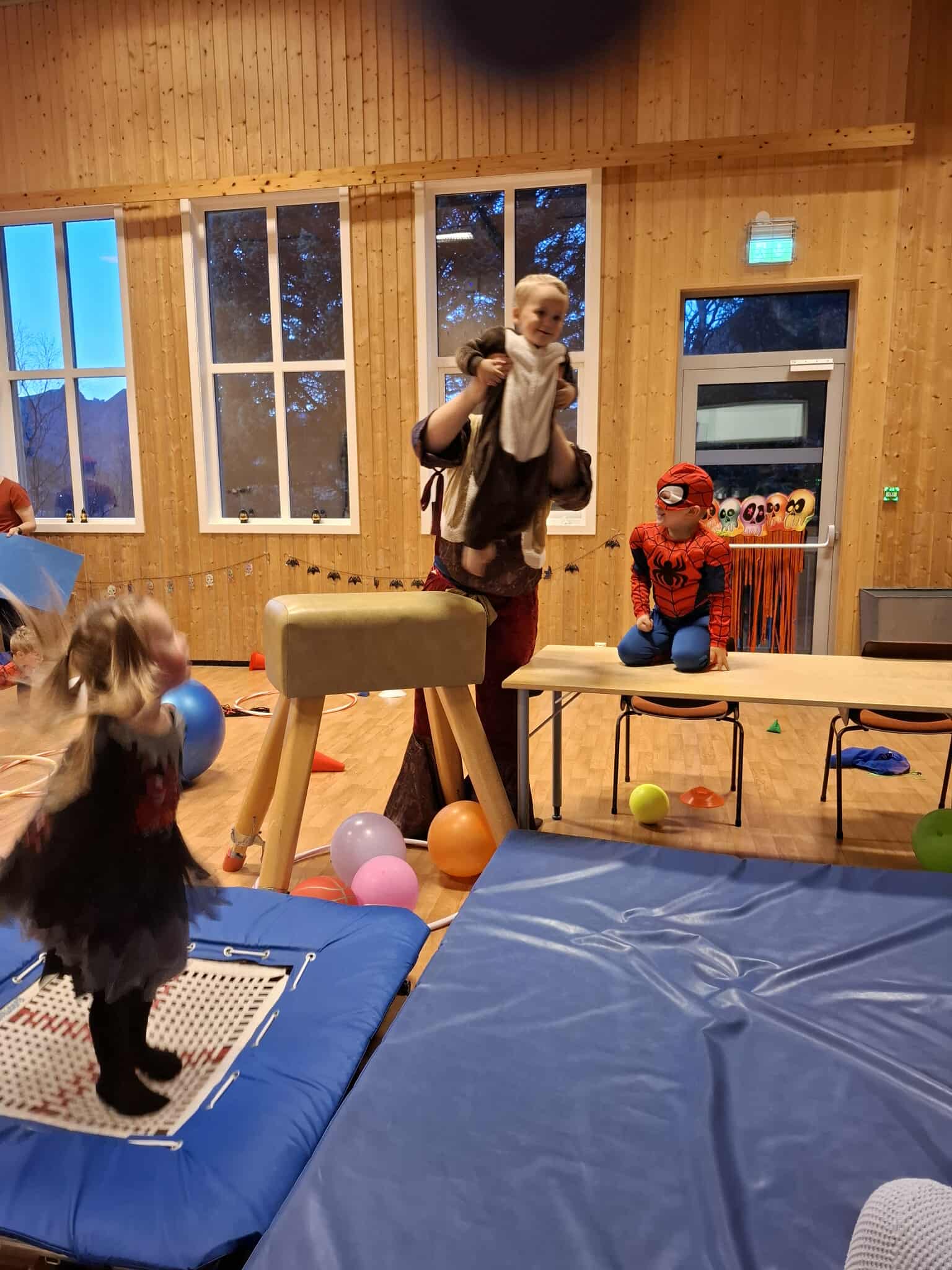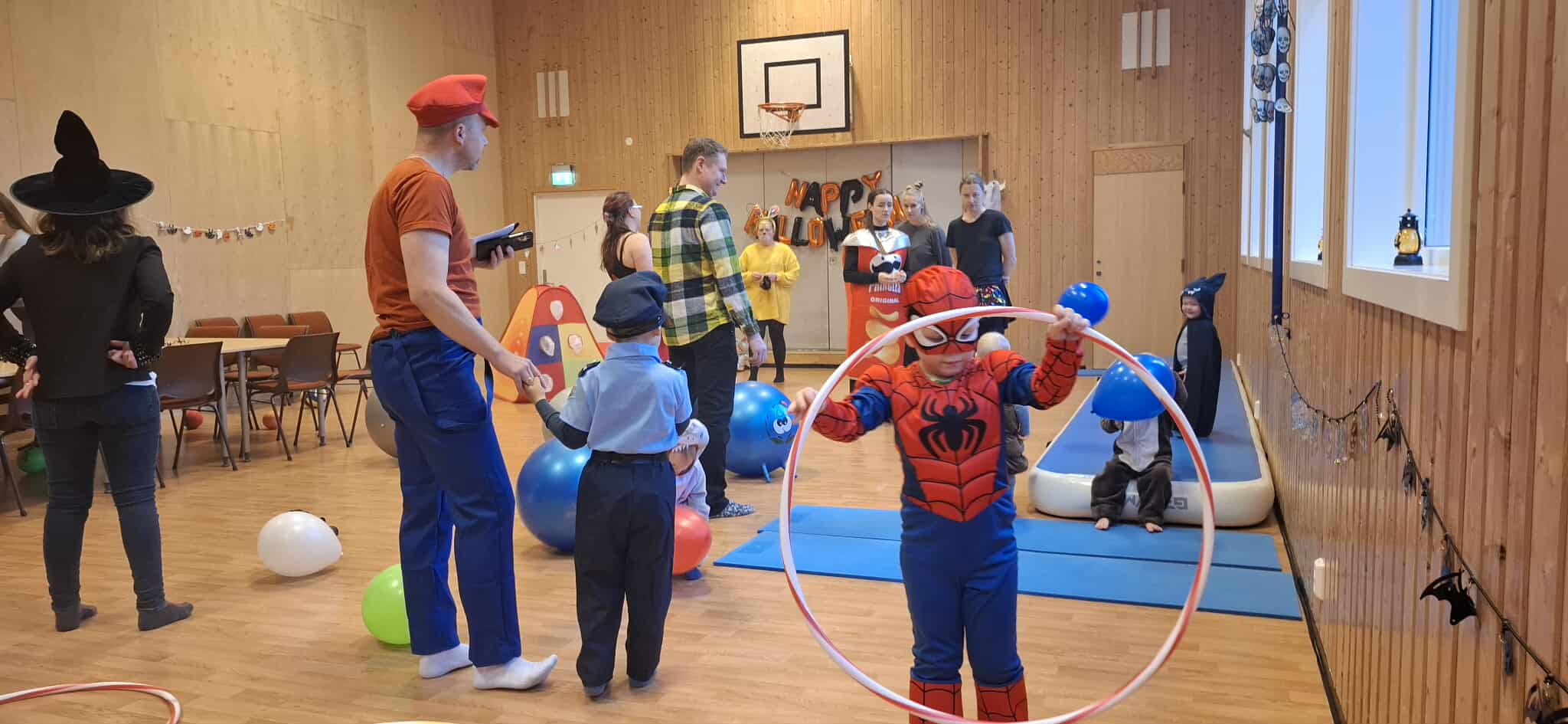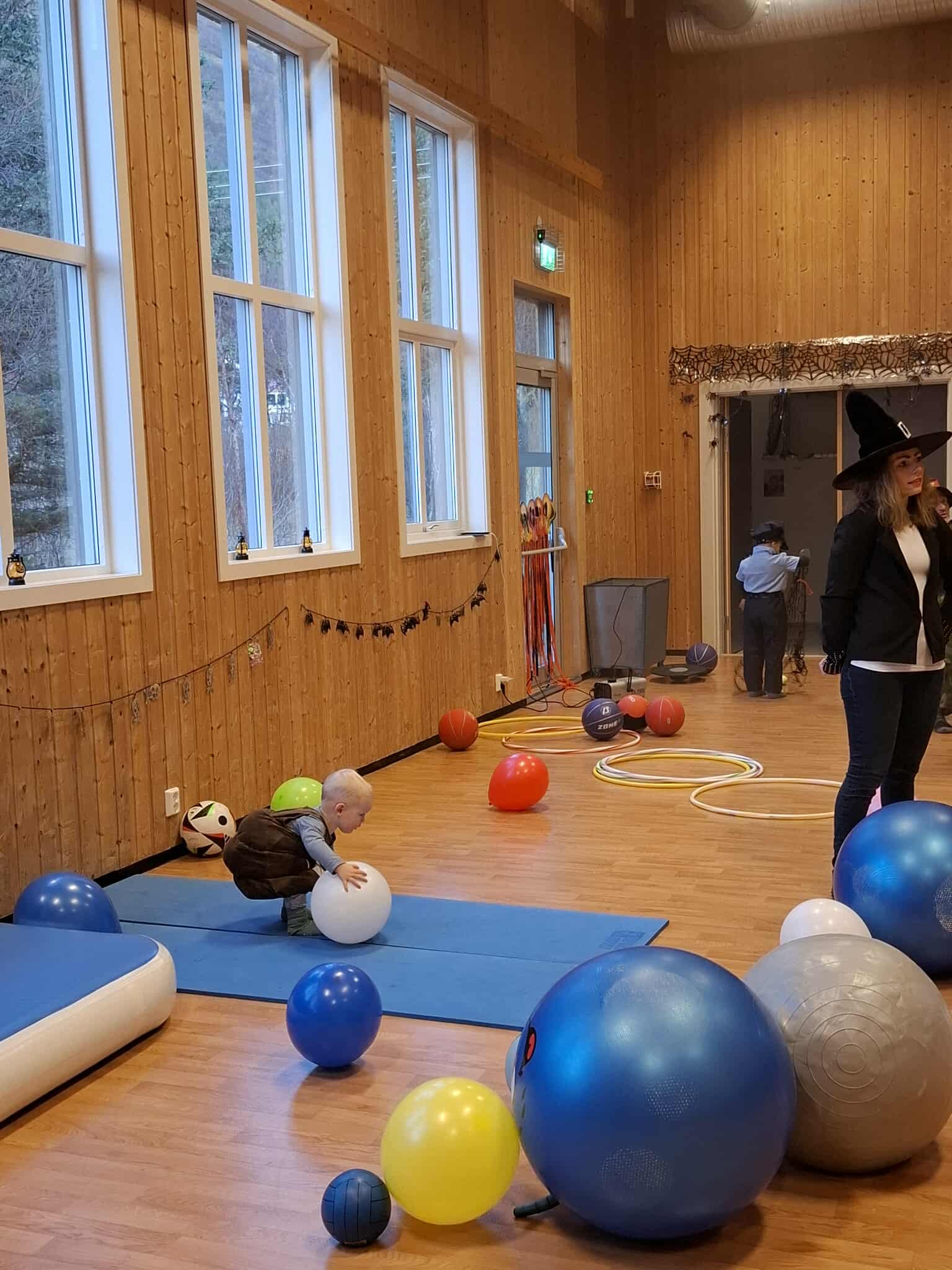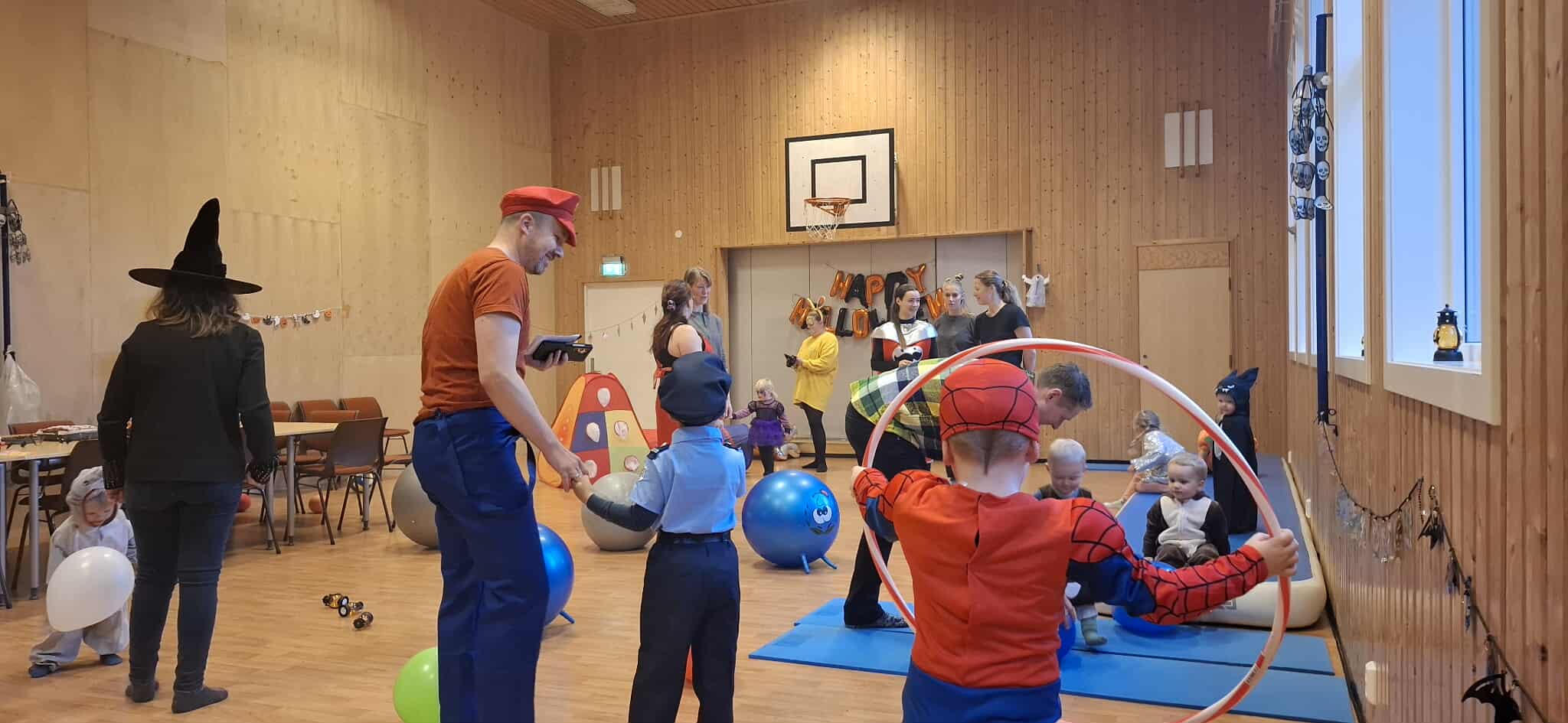 Det som til vanlig er arena for sirkeltrening, yoga, meditasjon, volleyball og fotball, ble forvandlet til et pulserende Halloween-univers, fylt av utkledde barnehagebarn og voksne, og et ukjent antall ballonger.