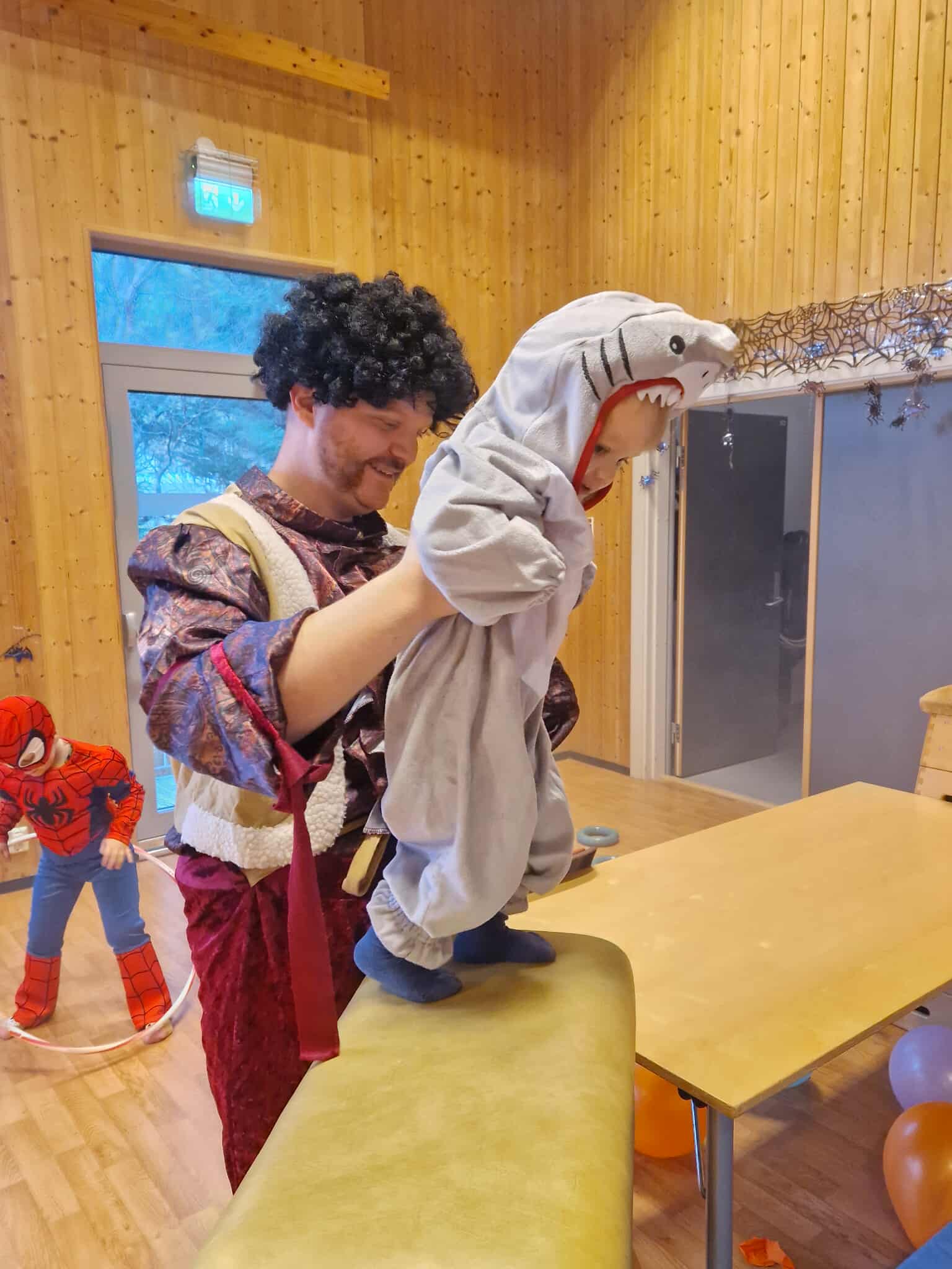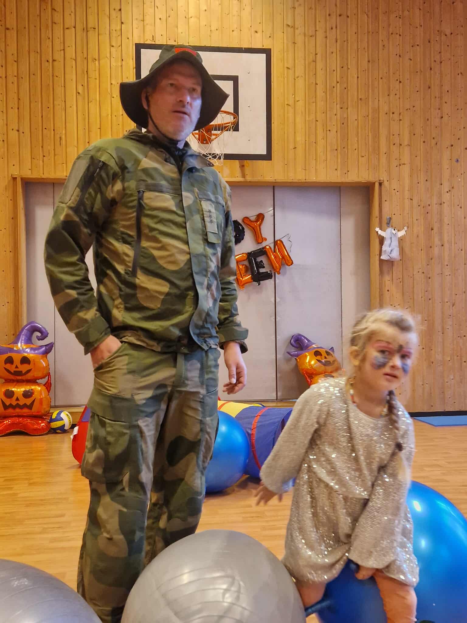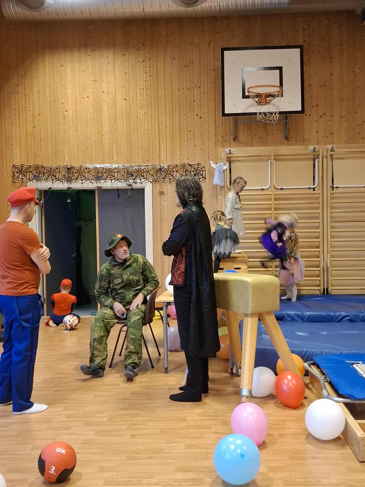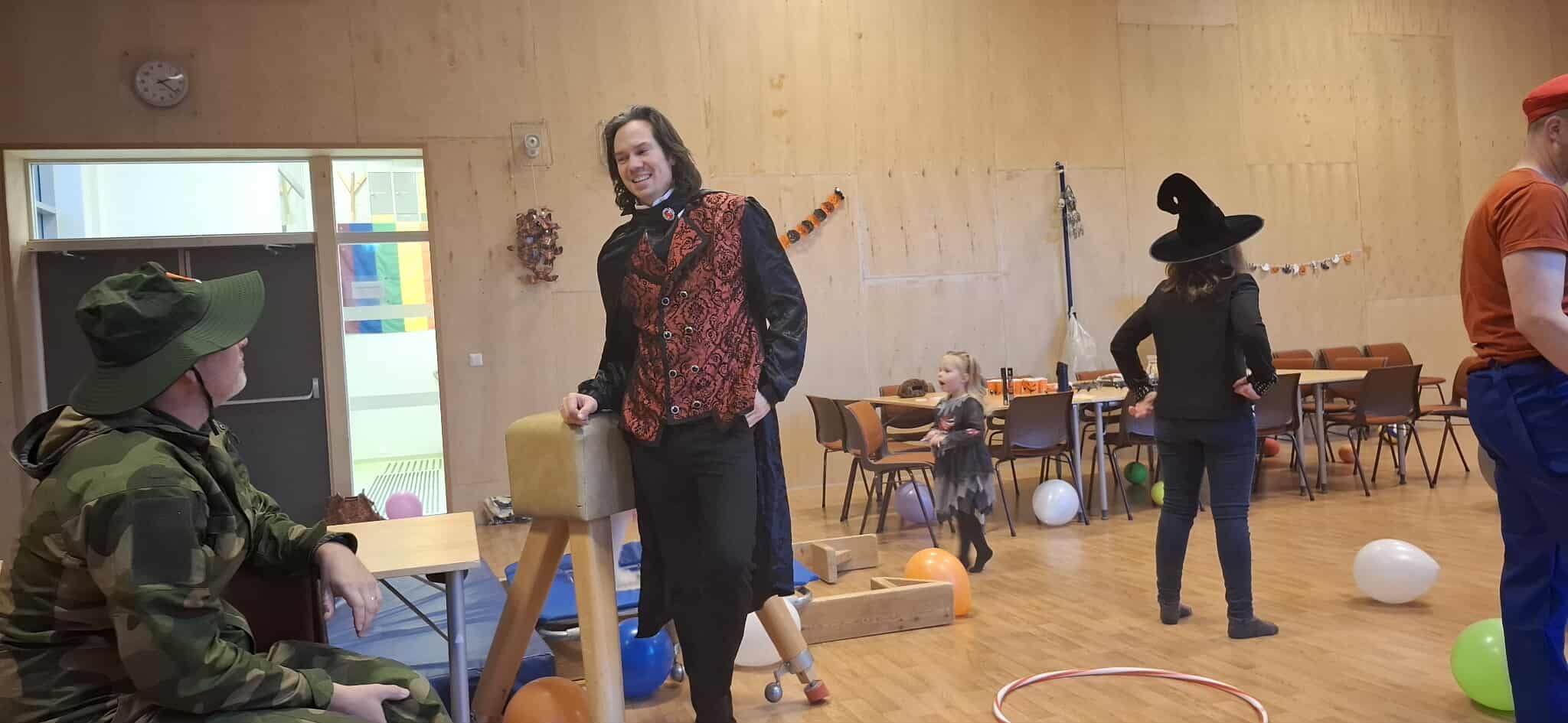 Det som til vanlig er arena for sirkeltrening, yoga, meditasjon, volleyball og fotball, ble forvandlet til et pulserende Halloween-univers, fylt av utkledde barnehagebarn og voksne, og et ukjent antall ballonger.