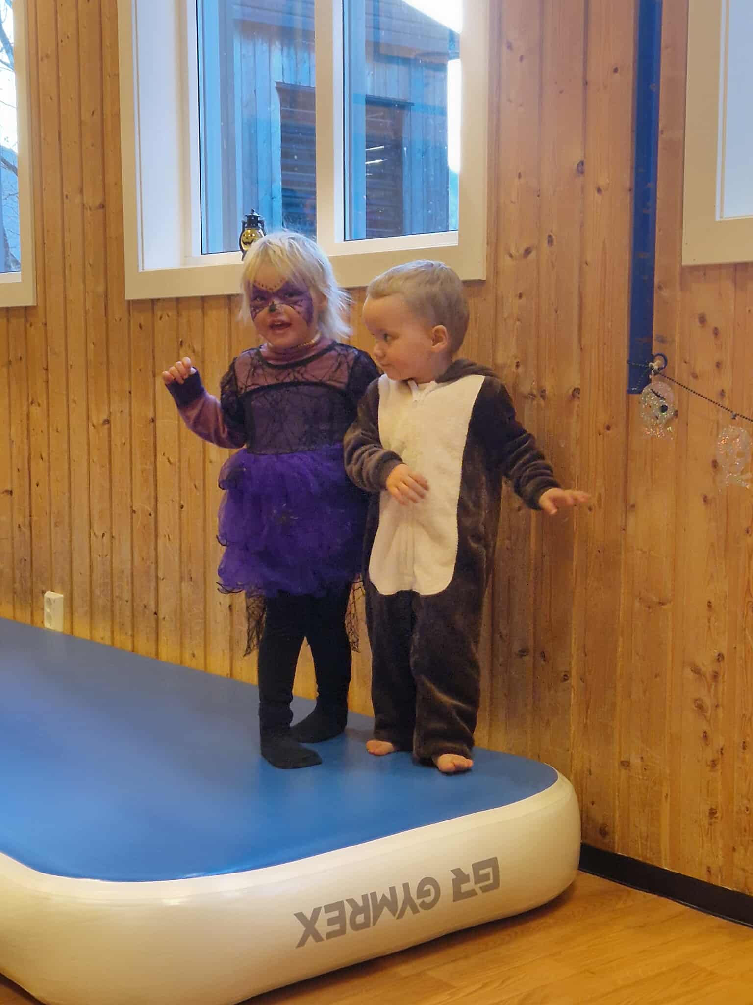Halloweenfeiring i gymsalen samlet store og små fra Strauman og Gimsøy, og var lørdag et midlertidig unntaks område fra både gravitasjon og Arbeidsmiljøloven regler om støynivå.